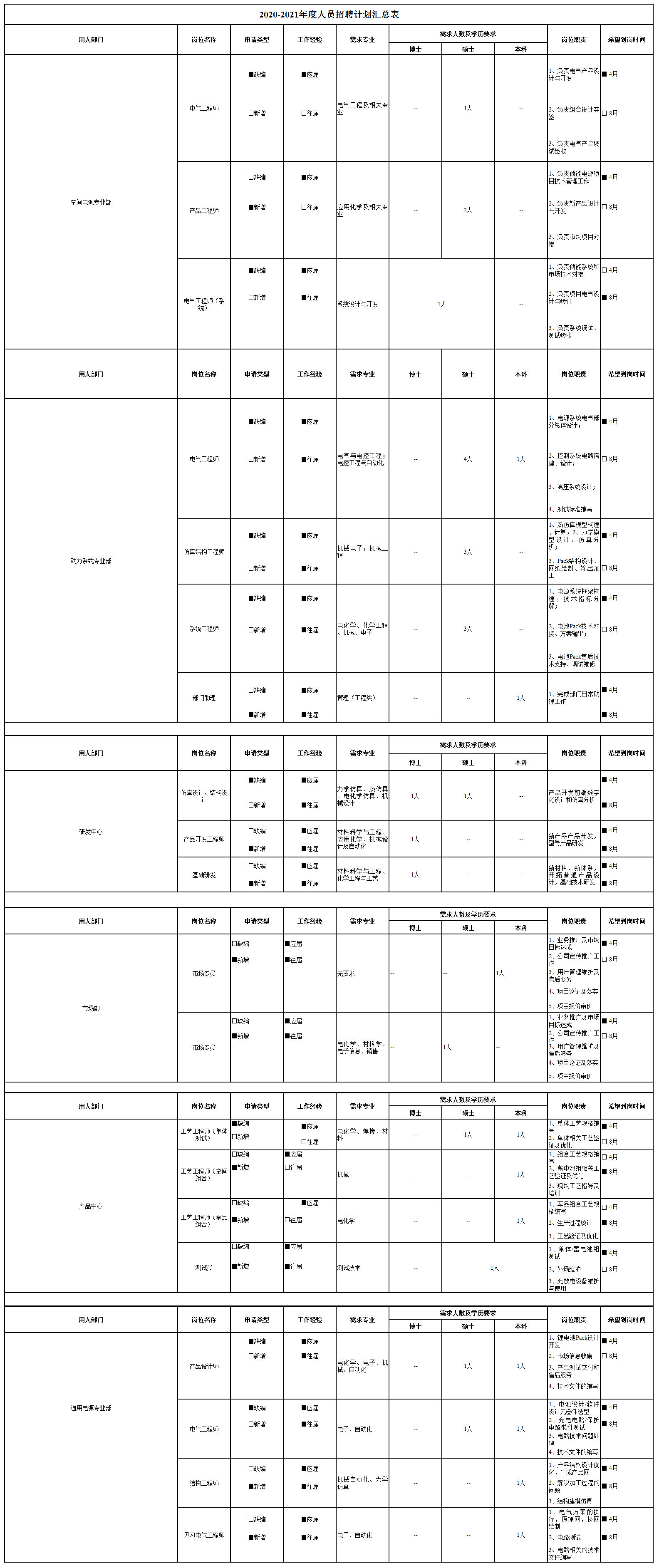 天津空间电源科技有限公司招聘简章