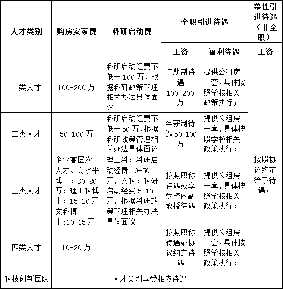 省“双创人才”;省部级突出贡献的中青年专家;省“333高层次人才培养工程”第二层次培养对象;省“十大青年科技之星”;国家级教学名师;全国模范教师;中华技能大奖获得者;全国技术能手;“国家级技能大师工作室”领办人;国家优秀科技工作者;中国科学院“百人计划”人选;科技部“创新人才推进计划”入选者;国家科学进步奖二等奖前五名;世界500强企业高级技术专家;其他相当于上述类别的人才。