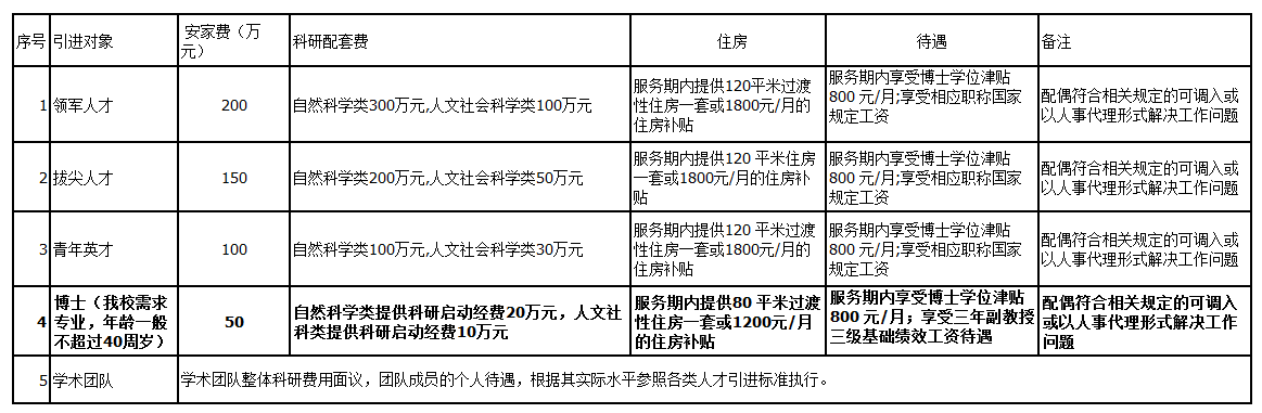 其他政策:领军人才、拔尖人才、青年英才和学术团队也可以“一人一议、一事一议”的方式引进。