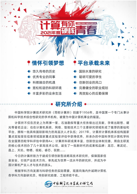 2021年度计算所主要招聘以下两类岗位和人员: