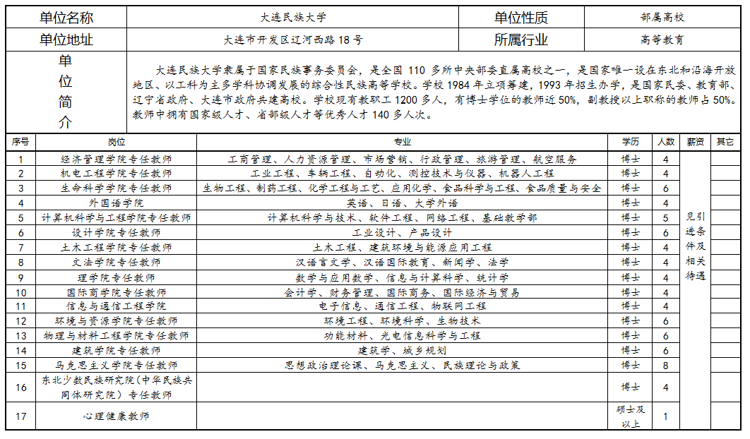 大连民族大学招聘简章