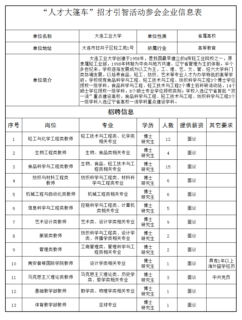 大连工业大学招聘简章